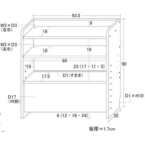• サイズ(約):幅93.5×奥行20×高さ90cm