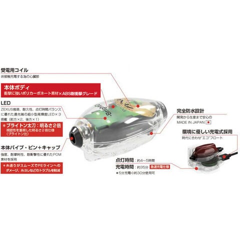 ゼクサス ブライトン M ライトゲーム M-SPR サスペンド(緑) 単品 ZEXUS BrightOn 充電式フロート ブライトン M ライトゲーム M-SPG サスペンド 【返品種別A】