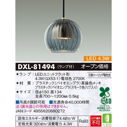 ダイコー LEDペンダント【コード吊】(電球色) リブ入り DAIKO DXL-81494 【返品種別A】