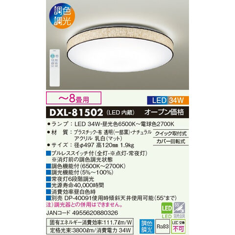 ダイコー 6畳~8畳用 LEDシーリングライト【カチット式】 DAIKO DXL-81502 【返品種別A】