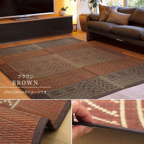 萩原 い草センターラグ(裏貼り) 伊勢(いせ) (幅176cm×奥行220cm ブラウン) 日本各地の伝統柄を表現した「和美模様」シリ-ズ! イセ1722BRF 【返品種別A】