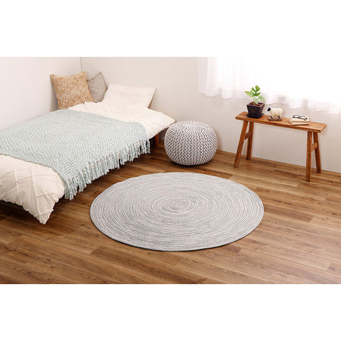HAGIHARA(萩原) ハンドメイド 綿100%の編み込みラグ ブレイド 円形ラグ(90R・グレーホワイト) Braid(ブレイド)cotton rug ブレイド90GR 【返品種別A】
