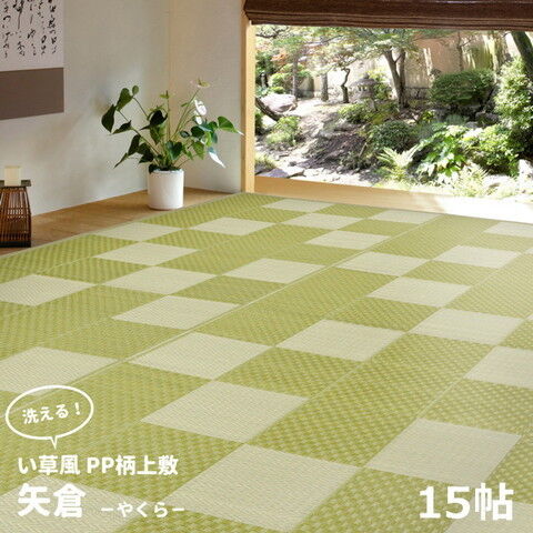HAGIHARA(萩原) 丸洗いできる い草風カーペット PP柄上敷 江戸間15帖(435×528cm・グリーン) 矢倉(やくら) ラグマット PPマット ヤクラE15GRコソウ 【返品種別A】