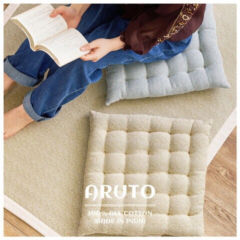◆インド綿ならではのやさしい風合いが魅力のシートクッション。裏面も同一生地を使用。