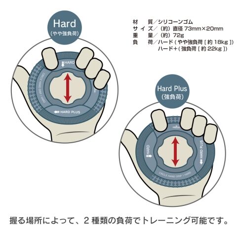◆握る場所によって、2種類の負荷でトレーニングできるサークル形ハンドグリップ。