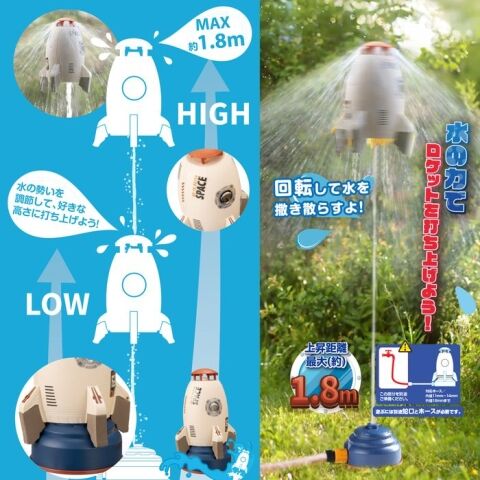 ◆水の力でロケットを打ち上げる! 水力を調整して、好きな高さに打ち上げ調節できます。