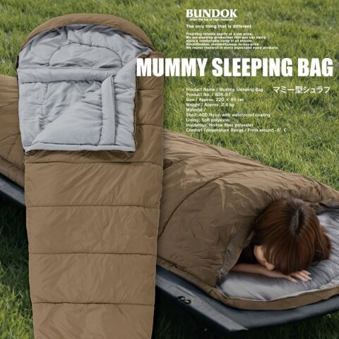 寒い季節のアウトドアやキャンプに最適なマミー型寝袋。