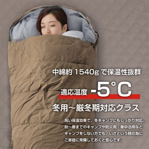 中綿1540gのしっかりした構造で、冷え込む夜でも快適な暖かさをキープします。