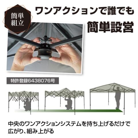 ◆中央のワンアクションシステムを持ちあげるだけで、誰でも簡単設営!