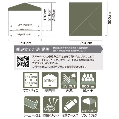 - 材質:[フレーム]スチール・ナイロン・ABS樹脂・ポリプロピレン [天幕]ポリエステル