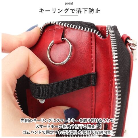 内側のキーリングにスマートキーを取り付けることで、スマートキーの紛失や落下の防止に!