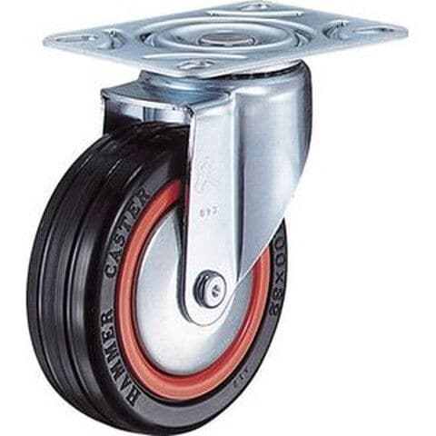 ハンマーキャスター M型 自在 ゴム車B入り100mm プレート式キャスター(ナイロンホイールゴム車) 420M-RB100-BAR01 【返品種別B】