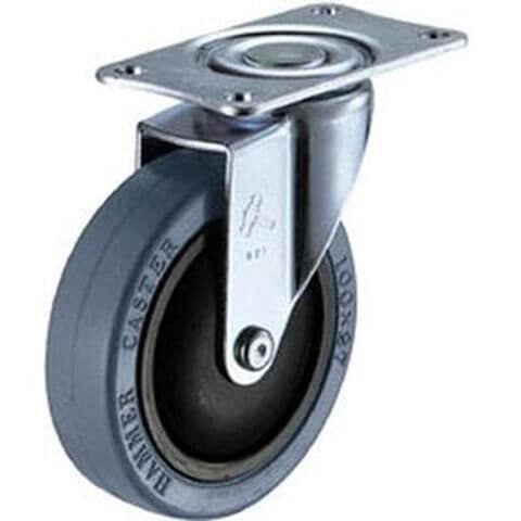 ハンマーキャスター 静かシリーズ E型 自在 ゴム車B入り100mm 省音キャスター(プレート式ナイロンホイールゴム車) 420BBE-FR100-BAR01 【返品種別B】