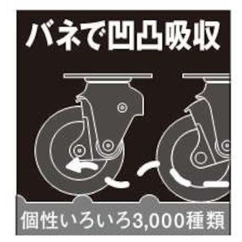 ◆ばねの力で凹凸路面での振動や衝撃を吸収すると同時に騒音を軽減したクッションキャスターです。