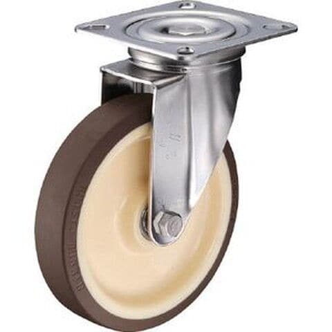 ハンマーキャスター オールステンレス 自在 ウレタンB車 200mm プレート式キャスター(ナイロンホイールウレタン車) 300S-UB200-BAR01 【返品種別B】