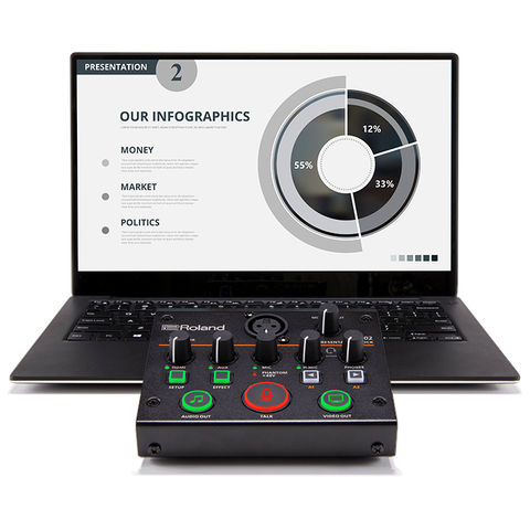 RolandのWebプレゼンテーション・ドックUVC-02はシンプルな設定で高品質の映像と音声をPCに送り、伝えたいイメージやメッセージをしっかりと聞き手に届けることで、オンラインによるコミュニケーションをこれまで以上に充実したものにすることができます。