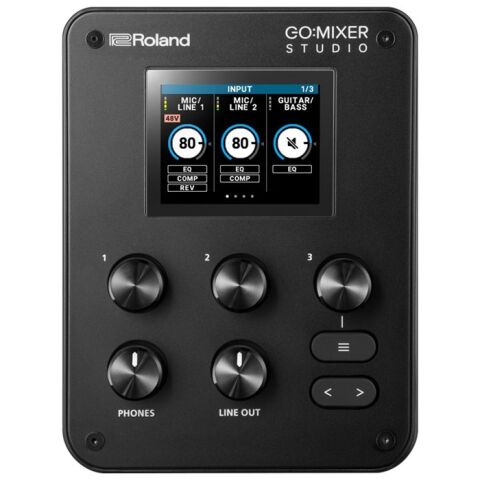 GO:MIXER STUDIOは、ホームスタジオでの楽曲制作・レコーディングからアウトドアでの演奏動画の撮影まで1台でこなせるコンパクトサイズなオーディオインターフェースです。