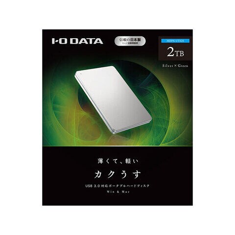 ハードディスク アイ・オー・データ機器|I-O DATA USB 3.2 Gen 1(USB 3.0)/2.0対応 ポータブルハードディスク「カクうす」 2TB(Silver×Green) HDPX-UTS2S 【返品種別B】