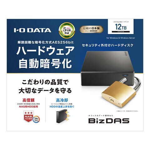 ハードディスク アイ・オー・データ機器|I-O DATA USB 5Gbps(USB 3.2 Gen1)対応 セキュリティハードディスク 12TB HDJA-SUTN12B 【返品種別B】