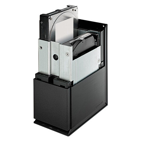 ミラーリングモード(RAID 1)利用の場合、自動復旧(オートリビルド)に対応! 新しいハードディスクに交換後、再度電源を入れると、自動でミラーリング状態に復旧されるので、再度ミラーリング設定をする必要はありません。もちろん、リビルド中でも、ハードディスクにアクセス可能です。