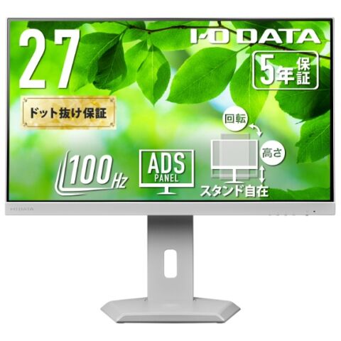 アイ・オー・データ機器|I-O DATA 液晶ディスプレイ(27型/ADS/FullHD 1920×1080/100Hz/5ms/HDMI/DP/USB Type-C/VESA/5年保証・無輝点保証)(ホワイト) LCD-C272SDW-F 【返品種別A】