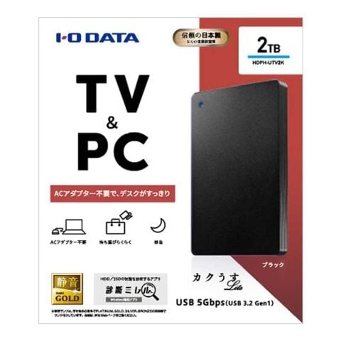 ハードディスク アイ・オー・データ機器|I-O DATA TV録画&PC両対応 USB 5Gbps(USB 3.2 Gen1)対応 ポータブルハードディスク「カクうす Lite」2TB(ブラック) HDPH-UTV2K 【返品種別B】