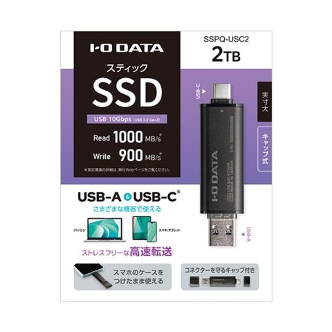 アイ・オー・データ機器|I-O DATA USB 10Gbps(USB 3.2 Gen2) USB-A&USB-C対応 スティックSSD 2TB SSPQ-USC2 【返品種別B】