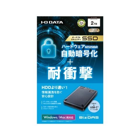 アイ・オー・データ機器|I-O DATA USB 5Gbps対応 長期5年保証 セキュリティポータブルSSD 2TB SSPD-SUTC2B 【返品種別B】