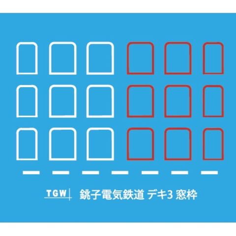津川洋行の銚子電気鉄道 デキ3用 標記インレタ(標記・窓枠各1枚入)です。