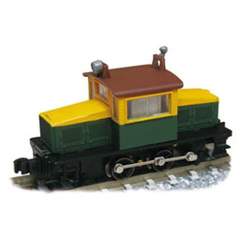 津川洋行のNゲージ車両完成品、紀州鉄道(旧御坊臨港鉄道) DB158 ディーゼル機関車 (後期仕様・車体色:緑×黄/動力付)です。