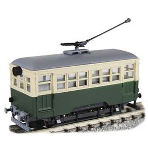 津川洋行のNゲージ車両完成品、2軸単車 1本トロリーポール仕様 (車体色:グリーン/クリーム・動力付)です。