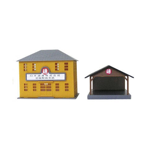 スケール:Nスケール 商品形態:組立キット 材質:ABS 看板シール付 製品完成寸法:日通事務所:約W64 ×D44mm×H54 、仕分所:約W60 ×D50mm×H36