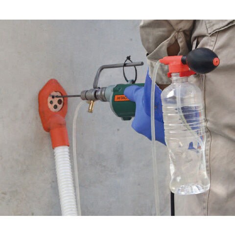 ◆水の使用により、ダイヤ刃先の冷却、切り粉排出を行い、穴あけ効率をアップ。