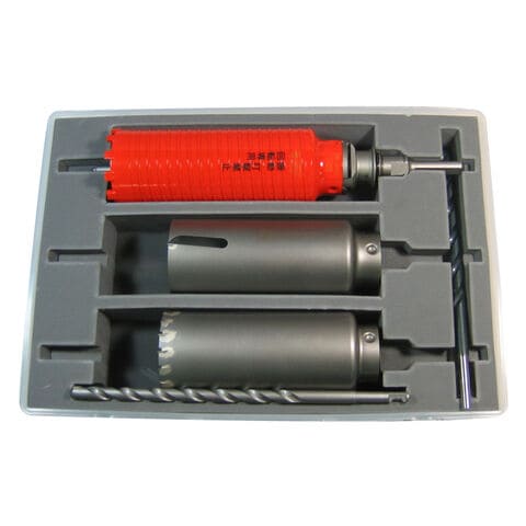 - セット内容:ドライモンドコアセット、ウッディングコアカッター(有効長130)、ALCコアカッター、ウッディングコアセンタードリル(ハイス)、ALCコアセンタードリル