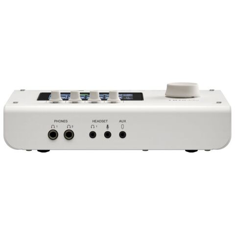 78dBのゲインレンジを誇る4つのコンボ入力端子と、1つのステレオミニAUX入力により、あらゆるマイクや楽器を接続可能。