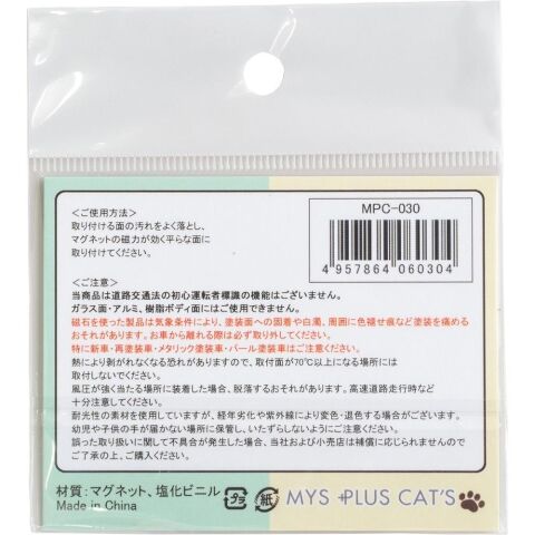 ◆磁石を使った製品は気象条件により、塗装面への固着や白濁、周囲に色褪せ痕など塗装を痛めるおそれがあります。お車から離れる際は必ず取り外してください。特に新車、再塗装車、メタリック塗装車、パール塗装車はご注意ください。