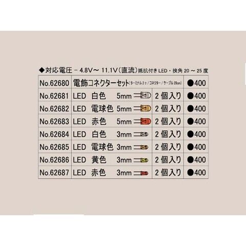 対応電圧:4.8V~11.1V(直流) 抵抗付きLED・挟角 20~25度