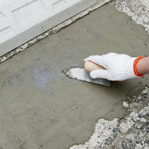 6.吹き付けた本液が乾かないうちに、準備したセメント補修材を本液の上に乗せ、補修面に押し込むようにコテで均します。
