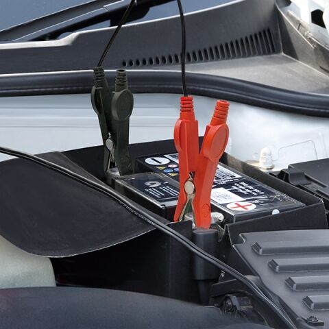 つなぐだけで充電開始し、電流設定も可能 ※鉛バッテリーに限る