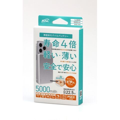大橋産業 準固体モバイルバッテリー5000mAh MagSafe(ホワイト) BAL 8005 No.8005 【返品種別A】