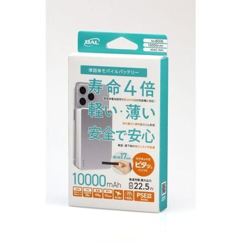 大橋産業 準固体モバイルバッテリー10000mAh MagSafe(ホワイト) BAL 8006 No.8006 【返品種別A】