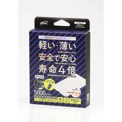 大橋産業 準固体モバイルバッテリー5000mAh DC12V付(ホワイト) BAL 8010 No.8010 【返品種別A】