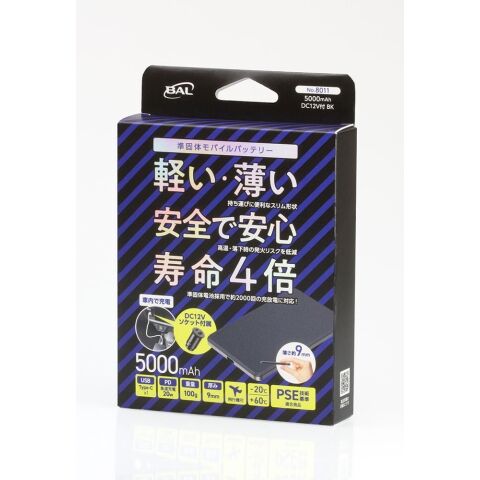 大橋産業 準固体モバイルバッテリー5000mAh DC12V付(ブラック) BAL 8011 No.8011 【返品種別A】