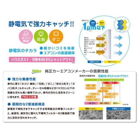 ホコリ・黄砂・花粉・ダニを強力キャッチ! 抗アレル物質・抗ウイルス・脱臭効果で車内を快適にします。