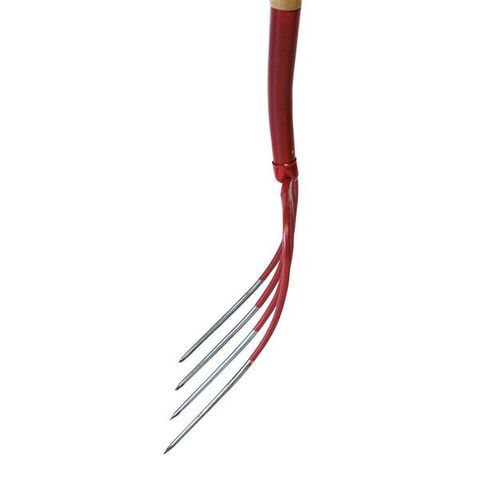 ◆先爪はスチール製ワンピース(無溶接一体加工)4本爪タイプで木柄を採用し、かき寄せ、すくい作業用として最適。