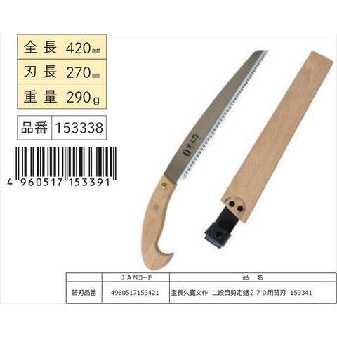 - 別売部品対応:宝長久寛文作二段目剪定鋸270用替刃(#153341)