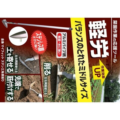 ◆狭い場所での使用に便利なアルミパイプ柄を採用したステンレス両面草削。
