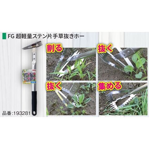 ◆先端部(ピンポイントに抜く)、後面部(広範囲に抜く)、刃付け両側面部(土ごと削り取る、草を集める)の1丁4役。