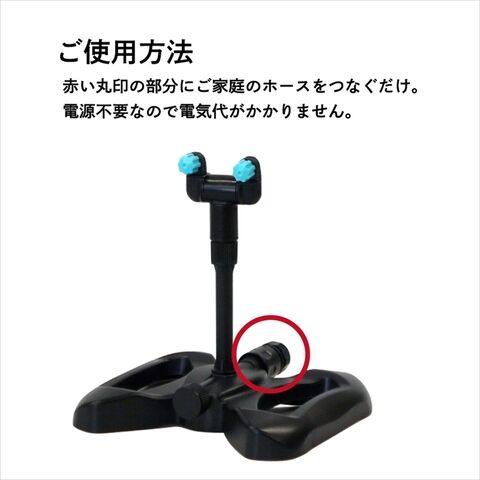 ◆ホース(水道)につないで微細な霧(ミスト)で気化熱を奪い、気温を下げます。