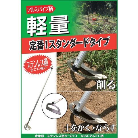 ◆アルミパイプ柄を採用し軽量な、頭部ステンレス窓あき草削り。